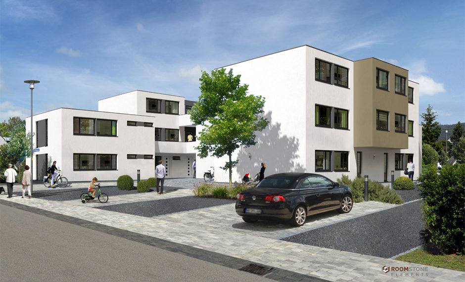 Nicht brennbare Wärmedämm/Fassadensysteme werden im Nachgang zur Elementmontage vor Ort ausgeführt. Ob Wärmedämmverbundsystem, vorgehängthinterlüftete Fassade oder Holzfassaden, alle Kundenwünsche sind realisierbar.
